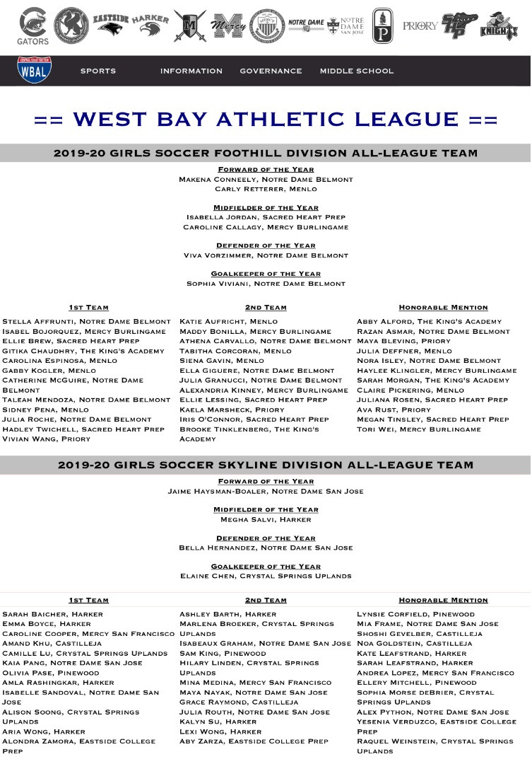 West Bay Athletic League First Team (2020)