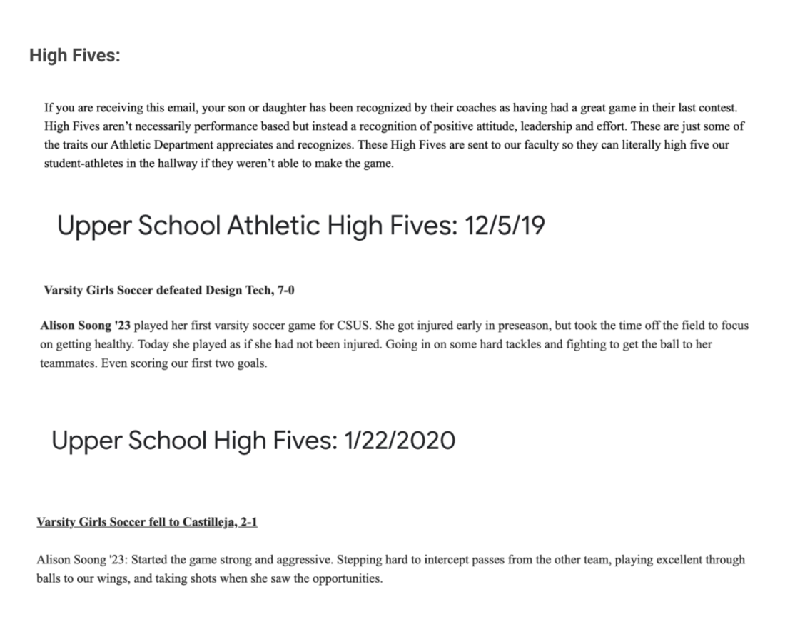 Crystal Springs Uplands School High Fives